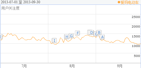 從數據可以看出,第三季度愛瑪在各個項目中均表現出色。首先在媒體曝光度上,網絡相關新聞傳播總量超過1000條,拉大了與第二陣營中企業的差距。具體來看,7月中,由其代言人周杰倫導演兼主演的電影《天臺愛情》熱播,更是讓愛瑪的用戶關注度迅速飆升。8月份,由愛瑪電動車獨家冠名播出的大型明星互動模仿秀《天下無雙》第一季正式收官,但持續不斷的線下活動也為愛瑪制造了無數的話題。9月,愛瑪推出最新力作路可兒(ilook),成功掀起電動美學新概念革命,極具未來感和科技感的新品更與iPhone5s同臺角力,從而收獲了大批的人氣。