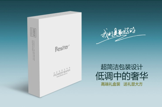Besiter/倍斯特元布達移動電源,有“金冠品質 經典之作”的美稱。它以高性能聚合物電芯演繹高端品質,以多重智能保護體現人性化設計,以5V/1A和5V/2A智能雙輸出實現一機多用,以IML防刮花工藝和邊框鍍銀工藝體現高貴奢華,以呼吸式電量顯示燈體現人文關懷,以超高的性價比贏得贊聲一片。