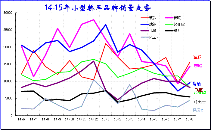 小型轎車的主力車型8月環比走強有波羅、賽歐等是增長的,體現了小型車仍是合資品牌的增量重點關注,對銷量提升很有促進。K2等車型的批發表現稍弱,處于調整期。自主品牌的小型轎車進一步弱化,消費升級和合資價格下探對自主小車不利。