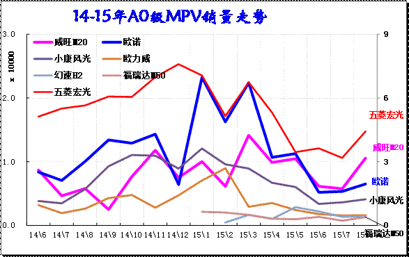 狹義乘用車的小型多功能車市場前期風聲水起,近期變化劇烈。A0級車的MPV近兩年發展較快,尤其是微客廠家的MPV類車型快速增長。五菱宏光和歐諾都是發動機前置形成兩廂型車身,在損失一定載貨空間同時獲得安全性和舒適性的大幅提升。五菱宏光和歐諾的近期銷量相對去年同期下降,產品系列化升級調整是影響低端的表現。市場熱點已經轉移出小型MPV。