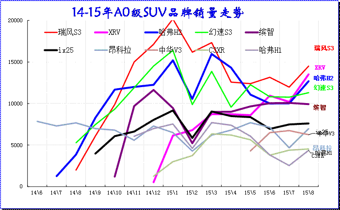 小型SUV總體較強,近期已經成為最大的車市亮點。自主的表現超強,瑞風S3、哈佛H2等表現很好。夏季屬于市場低迷期,補庫需求滿足后的自主小SUV逐步進入快速回落期,同比增速也明顯放緩。哈佛H2的促銷拉動銷量提升,體現長城的快速市場反應取得一定效果。而合資小型SUV的增長相對穩定,日系成為小型SUV主力,XRV、繽致表現強于IX25等韓系SUV,歐美系的小SUV走勢總體不強。