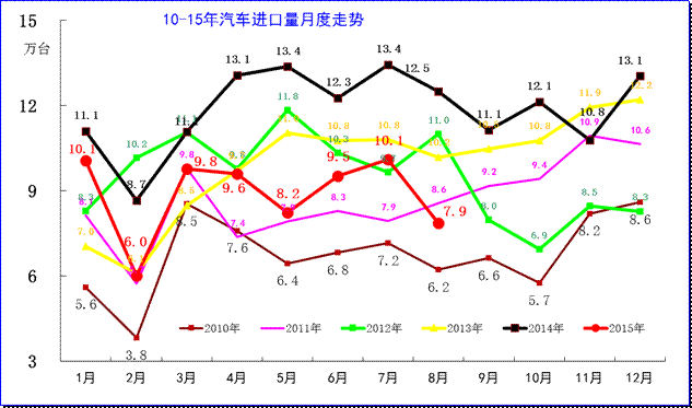 8、汽車整車進(jìn)口月度走勢