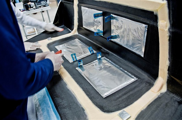 首先把碳纖維材料制成薄片,然后成型,烘干,硬化,再把超級電容植入其間,就做好了。可以通過疊加的方式,將其做成電池模塊,并做成車身面板的樣子,布置在車身框架之上。這種新型電池面板可以取代車門、后備廂蓋、發動機罩、車頂等。