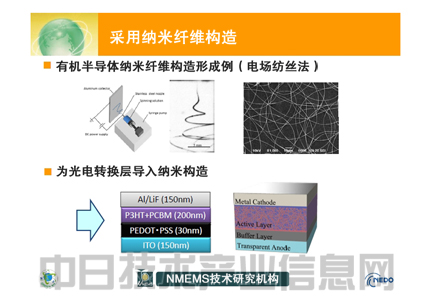為了實現在昏暗的室內也能高效發電、成本僅為1000日元的“粘貼型傳感器”,柔性太陽能電池的開發正在進行之中。將把采用可降低成本的有機半導體制造的薄膜太陽能電池制成nm(10-9m)級微細纖維狀,再編織成“布”。計劃將這種太陽能電池用于植物工廠。日本NMEMS技術研究機構綠色傳感器網絡研究所大岡山研究中心主任谷岡明彥以《傳感器網絡系統中納米纖維獨立電源的開發》為題發表演講,介紹了這種太陽能電池的開發詳情。