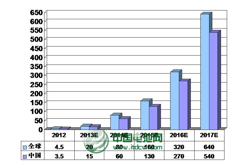 ② 真鋰研究預計,2013年將會有15萬輛電動三輪車使用鋰離子電池,而到2017年將會達到540萬輛,年均復合增長率將高達驚人的174.95%;