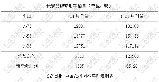 據長安公布的數據顯示,11月,長安系中國品牌汽車的銷量為118902輛。其中,長安旗下熱門車型——CS75、CS55、CS35、逸動系列,在11月份的銷量分別為12036輛、15777輛、12751輛、9343輛。而新能源系列在11月份的銷量為9585輛,前11個月累計銷量為65628輛。