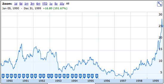 在蘋(píng)果處于最困難時(shí)候,史蒂夫·喬布斯伴隨著公司對(duì)NeXT的收購(gòu)而回到蘋(píng)果。隨后,喬布擔(dān)當(dāng)著引領(lǐng)蘋(píng)果創(chuàng)新和實(shí)現(xiàn)增長(zhǎng)的使命。到1990年末,蘋(píng)果已經(jīng)實(shí)現(xiàn)了又一個(gè)10年的增長(zhǎng),其股價(jià)在1990年代的10年中增長(zhǎng)了191.67%。