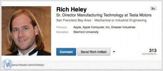 知名電動汽車廠商特斯拉(Tesla)開始學習其他硅谷公司的做法,嘗試雇傭蘋果員工。幾周之前,特斯拉Tesla成功將蘋果Mac硬件副總裁Doug Field招致麾下,負責汽車工業設計,現在又有消息稱特斯拉Tesla又從蘋果挖來一位員工:Rich Heley。根據LinkedIn頁面,Heley在今年11月離開蘋果公司,并在當月加入特斯拉Tesla。