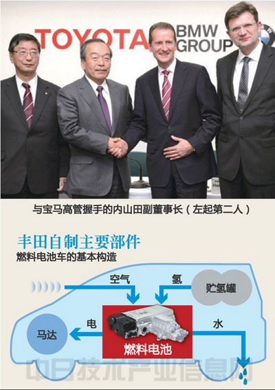 豐田就共同開發燃料電池車與德國寶馬正式達成了協議。豐田將向寶馬提供量產前的技術,將競爭對手拉入自已的陣營。這是豐田不再自恃自己有技術優勢,而是著眼于未來霸權的深謀遠慮的一