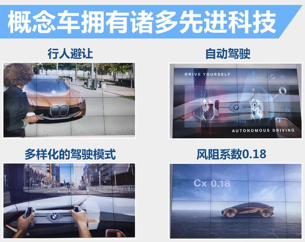 在本次“劃時代的推動力——寶馬集團未來展”全球巡展活動中國站中,除新戰略的公布,此前所發布的全新概念車VISION NEXT 100也來到中國?!癇MW VISION NEXT 100”概念車是寶馬集團最新產物,對于這款車整個設計團隊特別考慮了未來數十年內所有與寶馬品牌關系緊密的新趨勢和新技術。新車的設計融入了雙門轎跑車的 運動風格和轎車的雙重風格,標志性的雙腎型進氣格柵永遠是寶馬的第一元素。對于全新概念車,寶馬集團設計高級副總裁霍伊頓克先生(Adrian van Hooydonk)向網通社表示:“創造寶馬概念車‘BMW VISION NEXT 100’的目標是,設想一種人們能參與其中的未來方案?!睆闹锌梢钥闯?,全新概念車體現了寶馬對于未來新車的設計理念,同時也體現出四種不同的造車構想。