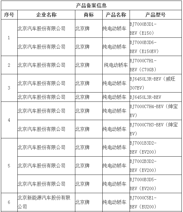 北京市示范應(yīng)用純電動小客車生產(chǎn)企業(yè)及產(chǎn)品備案信息