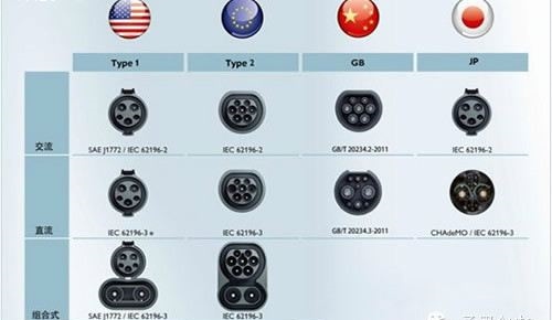 目前全球電動汽車的充電標準共有四種形式:分別為中、歐、日、美標準。四國標準之間存在著一定的差異。