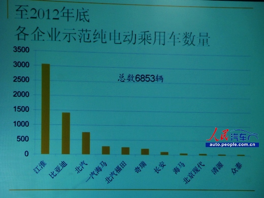 圖2:截至2012年底,主要企業(yè)示范純電動乘用車數(shù)量