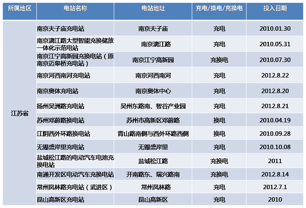 據(jù)電車匯不完全統(tǒng)計,截至目前,江蘇省共計完成充換電站13座,其中南京5座、蘇州2座,無錫2座,揚州1座,鹽城1座,常州1座,南通1座,巧合的是,七個城市中的六個,剛好組成了一個聯(lián)合申報的城市圈。