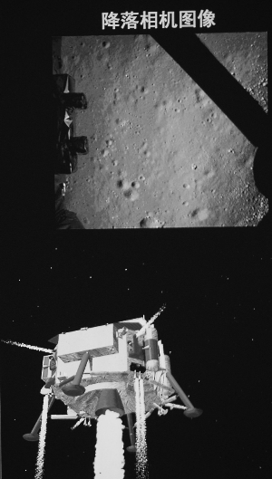 此時,嫦娥三號利用三維成像敏感器,對著陸區域仔細觀測,尋找最佳著陸點。