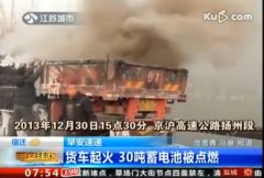 京滬高速揚州段 貨車拉4噸廢舊電池突發大火