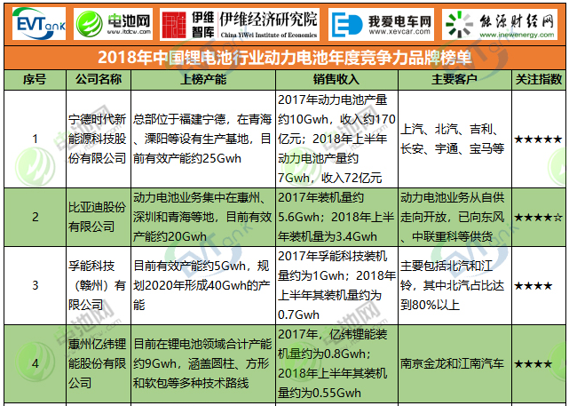 2018年中國鋰電池行業動力電池年度競爭力品牌榜單
