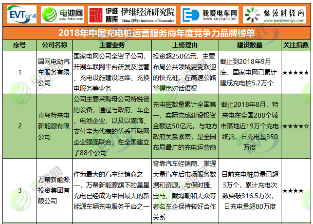 2018年中國充電樁運營服務商年度競爭力品牌榜單