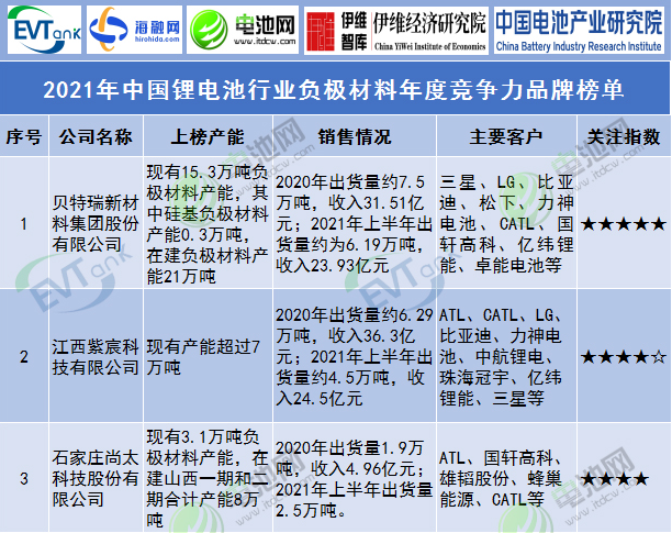 2021年中國(guó)鋰電池行業(yè)負(fù)極材料年度競(jìng)爭(zhēng)力品牌榜單