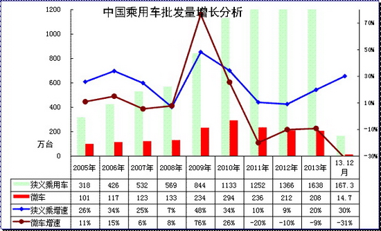 根據全國乘聯會數據,13年狹義乘用車同比增長20%,而12月的增速是30%,12月異常火爆。總體看狹義乘用車的增速在15%左右是較正常的,13年的12月增速是異常不可持續的。