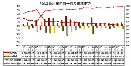 1.3、A00級轎車市場走勢