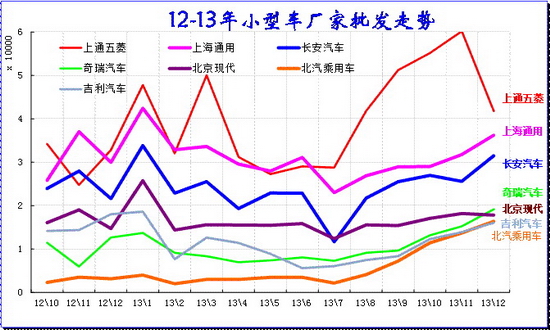 A 級車是合資企業超強的主力細分市場,主力廠家在此表現較強,尤其是9-12月的市場高潮期的A級車必然暴增,今年的合資主力企業增長相對去年稍好,去年過于保守。今年12月的主力廠家僅上海通用銷量稍有下降,其他廠家基本保持11月的水平。
