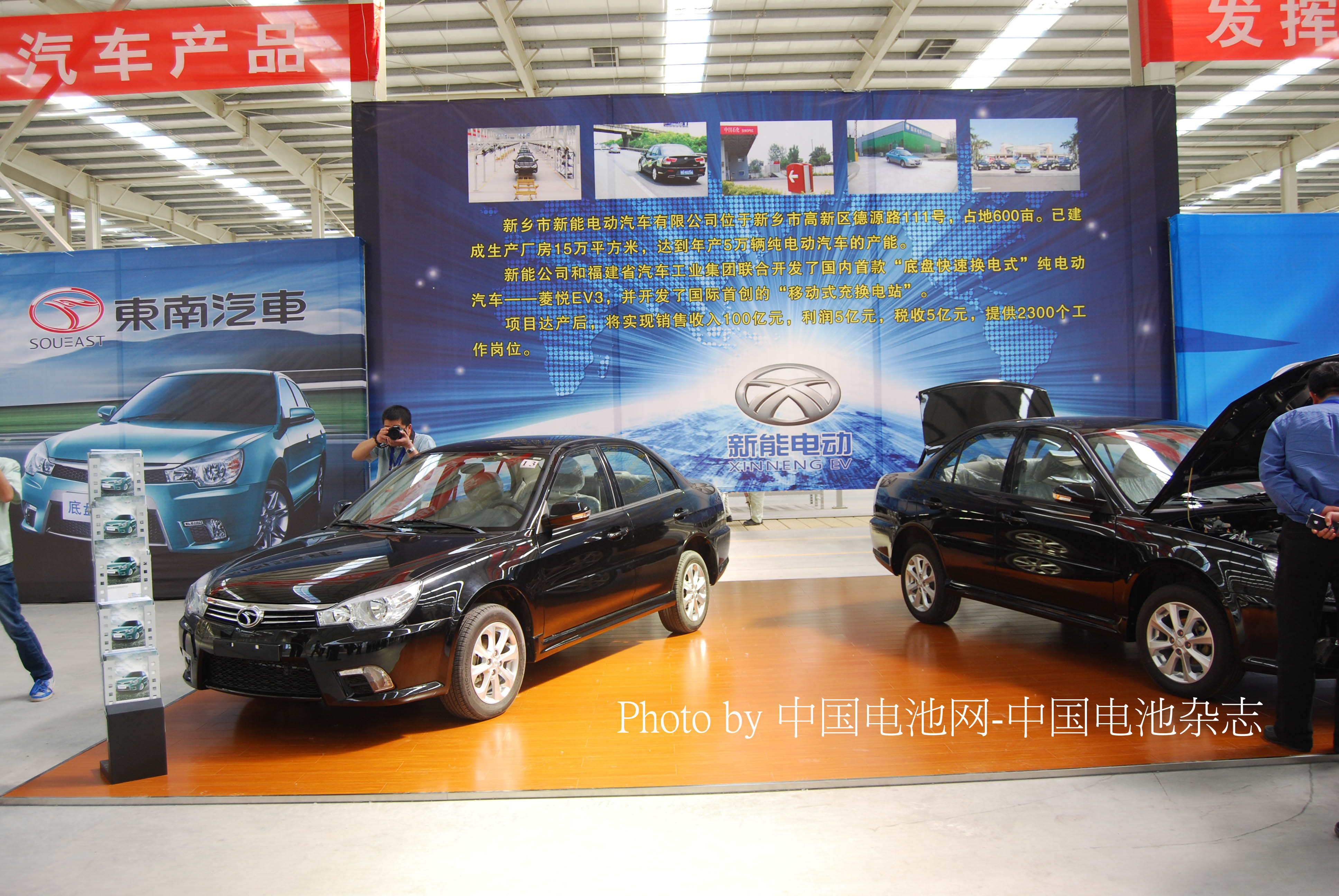 圖為河南新鄉(xiāng)新能電動有限公司聯(lián)合東南汽車推出的菱悅EV3電動轎車,攝影:中國電池網(wǎng)/肖何
