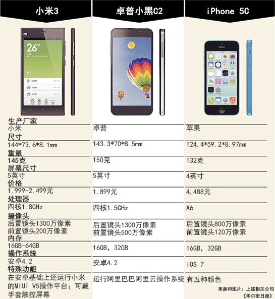 以中國生產(chǎn)的卓普小黑C2 (Zopo C2)手機為例。這款搭載安卓(Android)系統(tǒng)的智能手機擁有完整的高清屏幕,1,310萬像素的攝像頭以及高速圖像處理器。而這樣一款高配置手機的售價僅略高于300美元,與三星Galaxy S4和蘋果iPhone超過600美元的裸機價格相比更具誘惑力。此外,小米公司(Xiaomi Inc.)新推出的小米3智能手機售價僅為人民幣1,999元(約合327美元),而金立(Gionee)的Dream D1智能手機售價更是低至230美元。