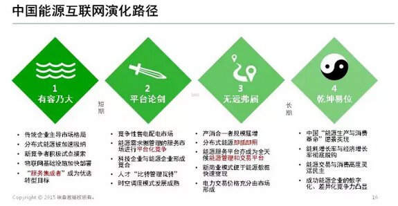中國在能源互聯網中獲得轉型紅利需要多久?在我看來,大概需要20年左右。這是因為集中式的能源供應商仍然主導資源配置。但變革已經起步,能源互聯網在中國形成規模市場并充分發揮效能,大約需要經歷四個階段。