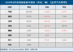 8月全球新能源車市:中國創(chuàng)新高 德法英齊“飛”