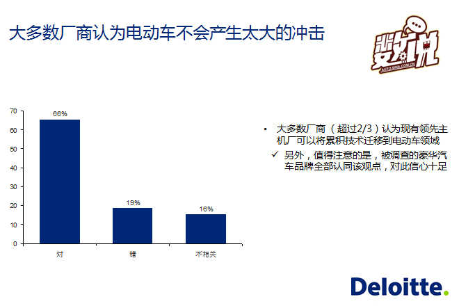 1、大多數廠商認為領先主機廠可以將現有技術遷移到電動汽車領域,因此電動汽車不會產生太大的沖擊。
