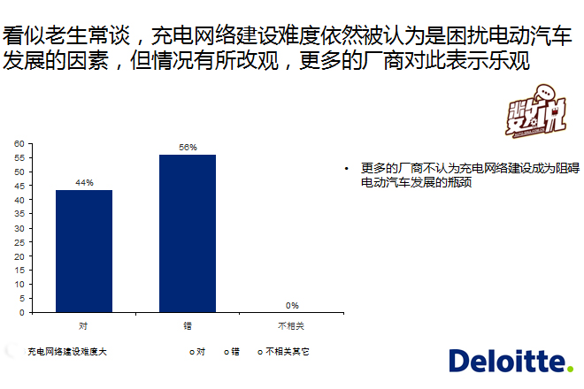 5、看似老生常談,充電網絡建設難度依然被認為是困擾電動汽車發展的因素,但情況有所改觀,更多的廠商對此表示樂觀。