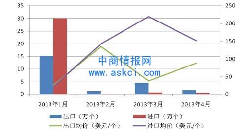 2013年1-4月我國鋰電池進出口月度統計數據