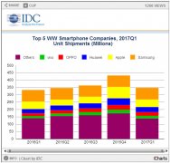 IDC:2017年一季度中國(guó)智能手機(jī)市場(chǎng)出貨量同比增長(zhǎng)0.8%