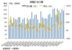 6月中國銅礦砂及其精礦進口135萬噸 上半年累計進口804萬噸