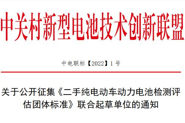 關(guān)于公開征集《二手純電動(dòng)車動(dòng)力電池檢測(cè)評(píng)估團(tuán)體標(biāo)準(zhǔn)》聯(lián)合起草單位的通知
