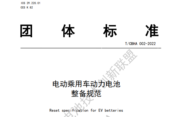 聯(lián)盟團(tuán)體標(biāo)準(zhǔn):T/CBHA 002-2022電動(dòng)乘用車動(dòng)力電池整備規(guī)范