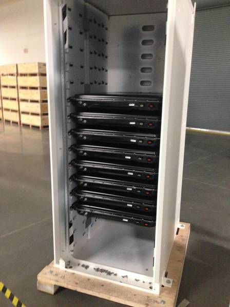 存儲Powerwall電池組件的貨箱。