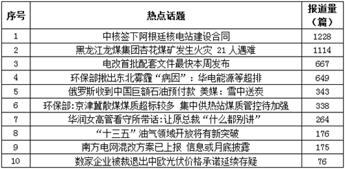 煤炭方面,黑龍江龍煤集團杏花煤礦“11.20”重大火災事故成為核心話題。在煤炭企業普遍艱難求生的關鍵時期,安全生產話題可能引發的輿論風險值得企業重視。此外,環保部稱京津冀散煤煤質超標較多、煤炭市場仍供大于求、我國煤炭消費量出現放緩態勢、中煤協稱正在抓緊研究煤炭產能退出機制等消息也受到關注。