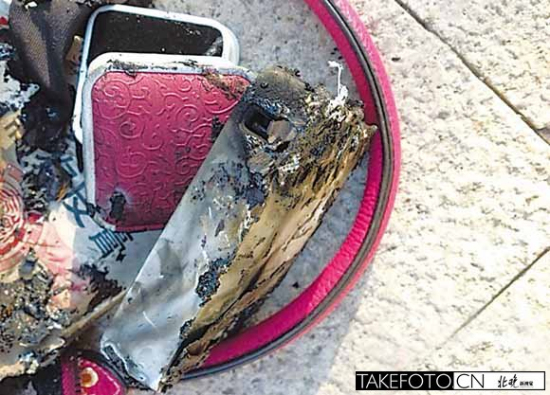 北京晨報(bào)網(wǎng)2013年11月6日訊:"充電寶放在包里沒有使用,突然就起火了。”前日,市民毛女士遭遇驚險(xiǎn)一幕,“一路跑到公司,突然發(fā)現(xiàn)包里冒煙起火,趕緊叫同事幫著滅火,等火滅了打開包一看,原來(lái)是充電寶著了,嚇?biāo)懒恕!泵勘硎荆掳l(fā)時(shí)確定看見明火,“包里沒有可能起火的東西,只可能是充電寶自燃,但我當(dāng)時(shí)根本沒有用啊。”毛女士稱,這個(gè)充電寶是朋友送的禮物,并未關(guān)注品牌,使用了將近半年時(shí)間。