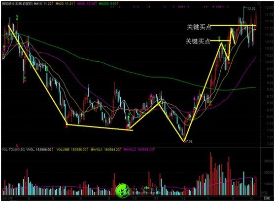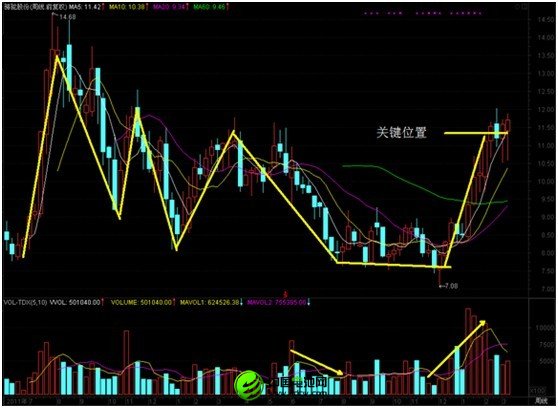 再來看周線圖,這樣我們可以有一個(gè)更廣泛的視野,該股是2011年6月首發(fā)上市,在上市后經(jīng)歷了一波大幅拉升,成交量巨幅放大,隨后開始震蕩下探走勢(shì)。在周線圖中,投資者需要關(guān)注以下幾個(gè)要點(diǎn):1、該股在震蕩下跌過程中,始終保持著放量上漲,縮量下跌走勢(shì),這說明買入的力量大于賣出的力量;2、該股自去年4月份開始,構(gòu)筑了一個(gè)為期8個(gè)月左右的一個(gè)標(biāo)準(zhǔn)杯柄形態(tài),整個(gè)底部構(gòu)筑在4個(gè)月左右,時(shí)間比較充分;3、目前該股正在構(gòu)筑杯柄位置,一旦突破11.40元關(guān)鍵位置便是買入關(guān)鍵點(diǎn);4、自去年底開始的這波拉升,成交量巨幅放大,顯示有資金介入的跡象,這樣的資金交投力度,很大概率上是機(jī)構(gòu)資金所為;5、美中不足的是該股杯柄形態(tài)的構(gòu)筑處于200日周K均線以下,顯示該股的股價(jià)強(qiáng)度不夠,這是值得投資者憂慮的一點(diǎn)。