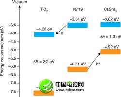 CsSnI3固態(tài)太陽(yáng)能電池組件的能級(jí)。
