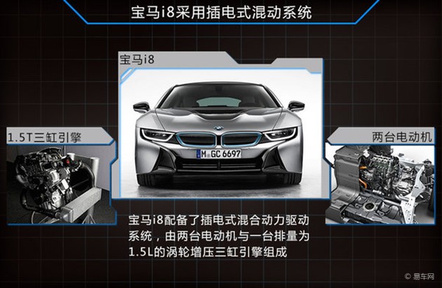 在目前寶馬i系列品牌中,寶馬i3被定義為一款小型車,而寶馬i8的定位則是超級跑車。寶馬i8不但擁有科技感十足的外觀,同時其具有超低的油耗,與現有的其他品牌超級跑車形可以說形成鮮明對比。根據寶馬此前公布的信息,寶馬i8配備了插電式混合動力驅動系統,由兩臺電動機與一臺排量為1.5L的渦輪增壓三缸引擎所組成。其中1.5T引擎的最大功率為100千瓦,而使用eDrive技術電動機,最大功率為164千瓦。在純電動驅動下,寶馬i8的百公里加速僅為4.6秒,同時可行駛約32公里。此外值得一提的是,寶馬i8的油耗僅為2.5L,在超級跑車細分市場中,油耗表現非常具有優勢。