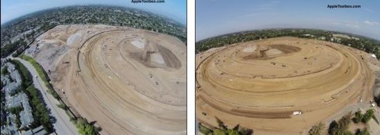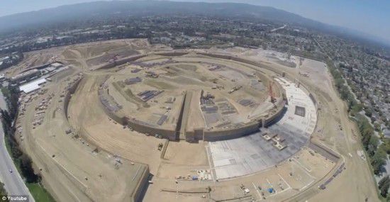 Gopro相機(jī)拍下的蘋果(Apple)公司“飛碟”新總部的地基