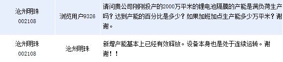 15日晚間滄州明珠(002108)在全景網(wǎng)互動(dòng)平臺(tái)上表示新增產(chǎn)能基本上已經(jīng)有效釋放。設(shè)備本身也是處于連續(xù)運(yùn)轉(zhuǎn)。