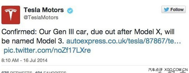 而之前提到的為Model 3,新車(chē)將比Model S小20%左右,而續(xù)航里程達(dá)到200英里,約合321公里。很有可能在2015年的底特律車(chē)展上正式亮相,并計(jì)劃將在2016年正式上市。新車(chē)價(jià)格相對(duì)更低廉,預(yù)計(jì)售價(jià)只有Model S的一半左右。其高層表示,Model 3 不會(huì)采用的鋁合金平臺(tái),而且該公司將憑借更經(jīng)濟(jì)的電池來(lái)降低整體成本。從目前的消息來(lái)看,新車(chē)最大的競(jìng)爭(zhēng)對(duì)手將很有可能鎖定為寶馬i3。