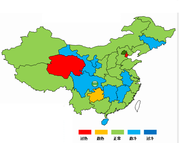 從分地區(qū)景氣運(yùn)行情況來看,青海、天津景氣指數(shù)進(jìn)入過熱區(qū)間、貴州處于趨熱區(qū)間、甘肅、四川、湖南、江西、安徽、吉林、海南處于趨冷區(qū)間。