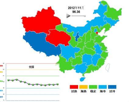 從分地區景氣運行情況來看,新疆、甘肅、天津景氣指數進入過熱區間、進入趨熱區間,西藏、寧夏進入過冷區間。
