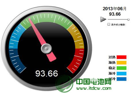 從分指標運行指數來看,2013年6月中輕出口景氣指數93.88、資產景氣指數98.05、利潤景氣指數90.58。從同比增長情況來看,各項指標均低于去年同期水平,月度環比增長也呈下降態勢。