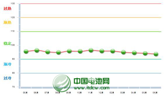 6月份中輕景氣指數為93.669,比上月下降0.52,位于“穩定”區域(參見圖1-1)。